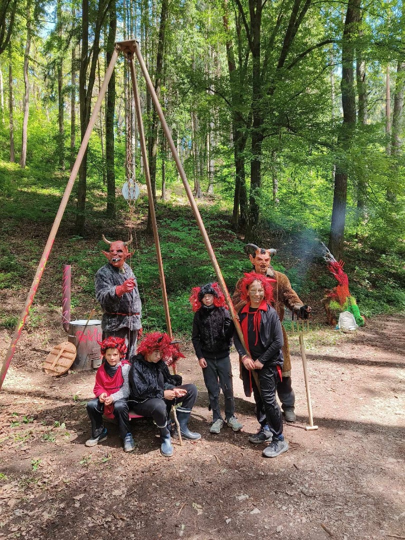 Letos jsme se v sobotu 24. května, sešli za chladného rána na divockém hřišti. Chladné počasí ani vlaková výluka neodradily téměř 1300 dětí a dospělých k procházce pohádkovým lesem, kterou pro ně vytvořilo 170 nadšenců a dobrovolníků. Čas ukáže jestli příští rok pohádkový les ano nebo ne…