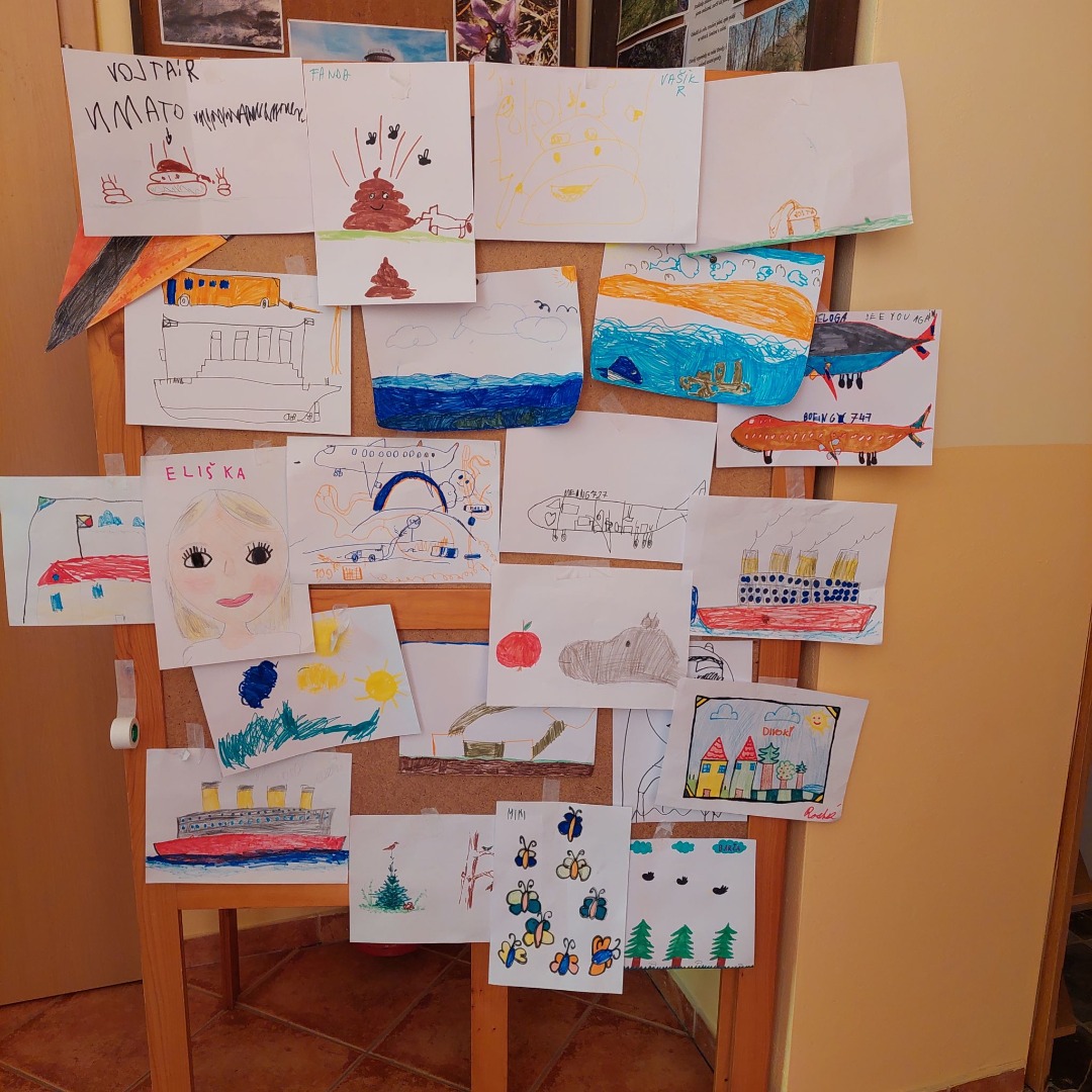 Středa ráno než začalo pršet nás navštívila Bára Vávrová, seznámila nás s životem koní, zájemci měli možnost jízdy na poníku a koni. Stále prší, sportovní olympiádu jsme museli zrušit, nahradili jsme ji poznávací, při které byly využity tabule na výuku prvouky prvního stupně. Dokončeny a vyžehleny batikovaná trika. Vytvořena výstavka „Divoky dětskýma očina“, dřevěné domečky, zahrádky, ulity, přírodniny, obrázky. Špekáčky opečeny pod pergolou.